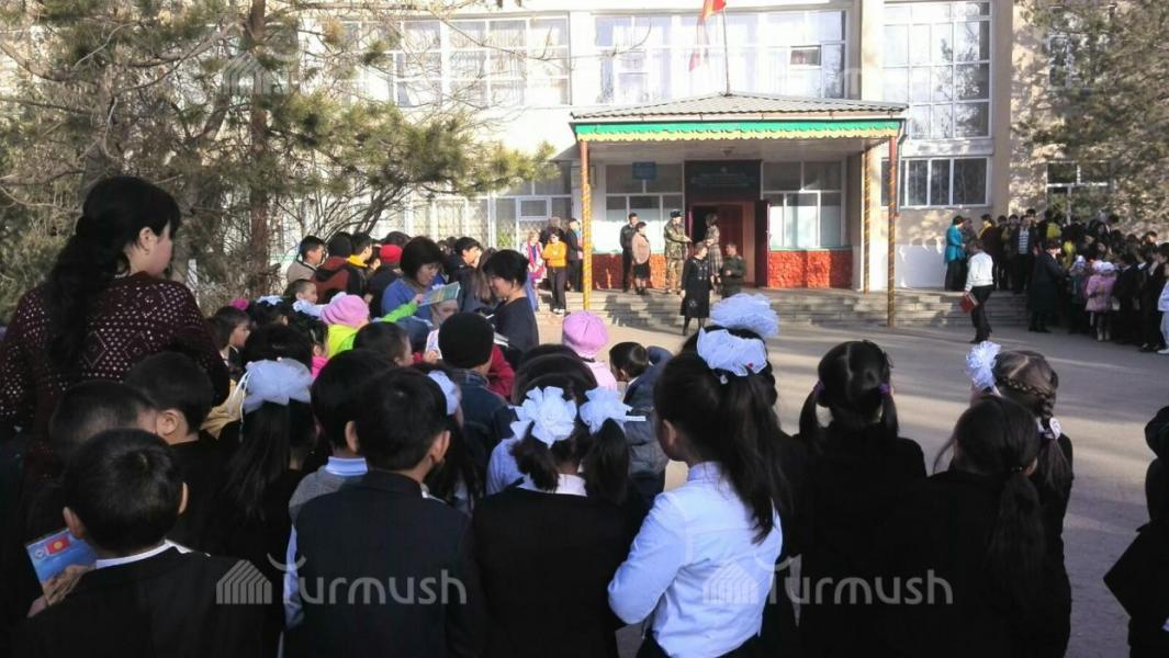 Караколдун мектептеринде өрт учурунда жалпы эвакуация кылуу боюнча машыгуулар өтүп жатат (фото)