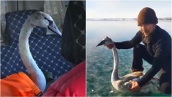 Видео — Ысык-Көлдө музга жабышып, кыймылдай албай калган ак куу