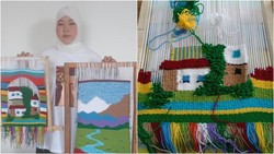 Толгонай Кубанычбекова гобелен аталышындагы француз килемчелерин токуп келет