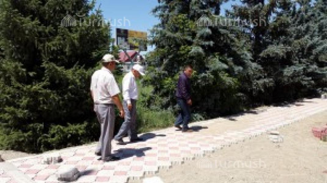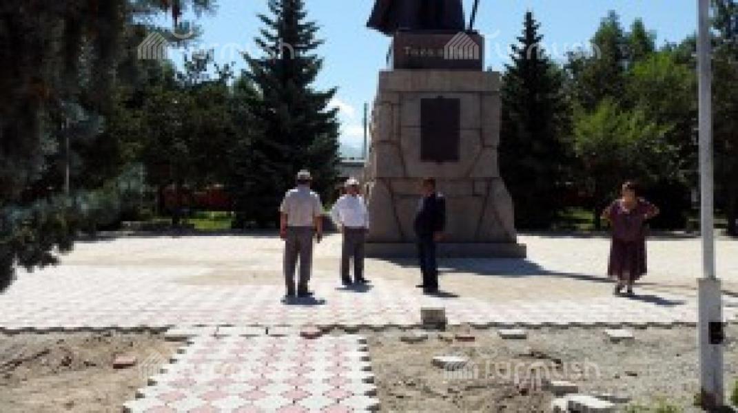 В городе Каракол проводятся работы по укладке брусчатки перед скульптурой «Тага-Бий» (фото)