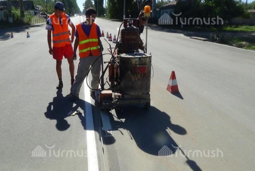 В Караколе впервые на 4-полосной улице Карасаева появились светящиеся дорожные полосы (фото)