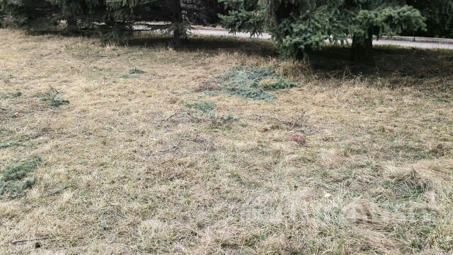 В Караколе в сквере вырубили хвойные деревья, поврежденные насекомыми-вредителями (фото)