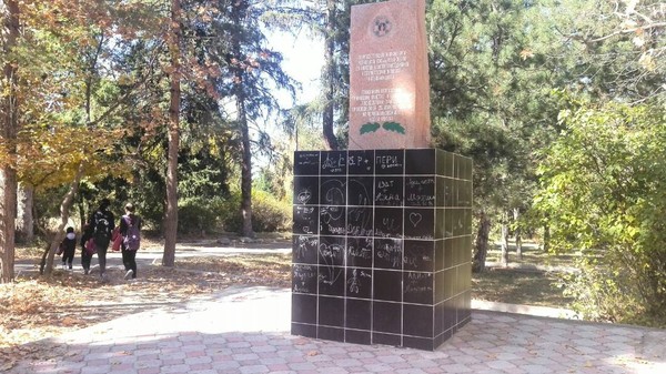 В Караколе неизвестные разрисовали памятник участников Чернобыльской трагедии (фото)