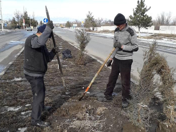 В Караколе восстанавливают клумбу, по которой ночью проехала машина и нанесла ущерб на 100 тыс. сомов (фото)
