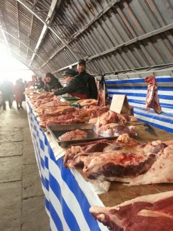 Ежедневно торговцы центрального рынка Каракола продают 150-200 кг мяса